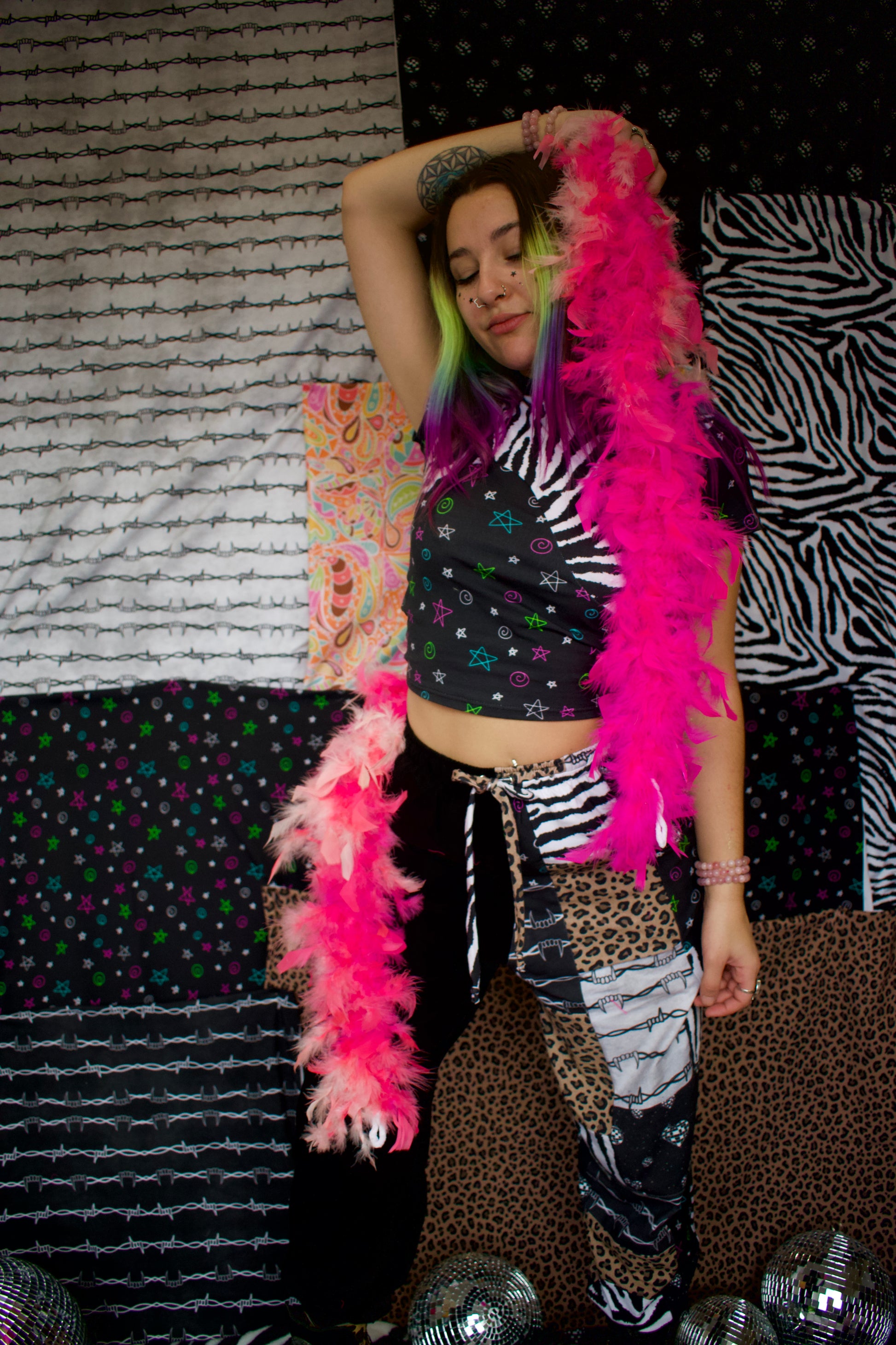 1 patchwork leg featuring the patterns: vampwire, vampwire 2.0, disco love, starstruck, zebra & leopard