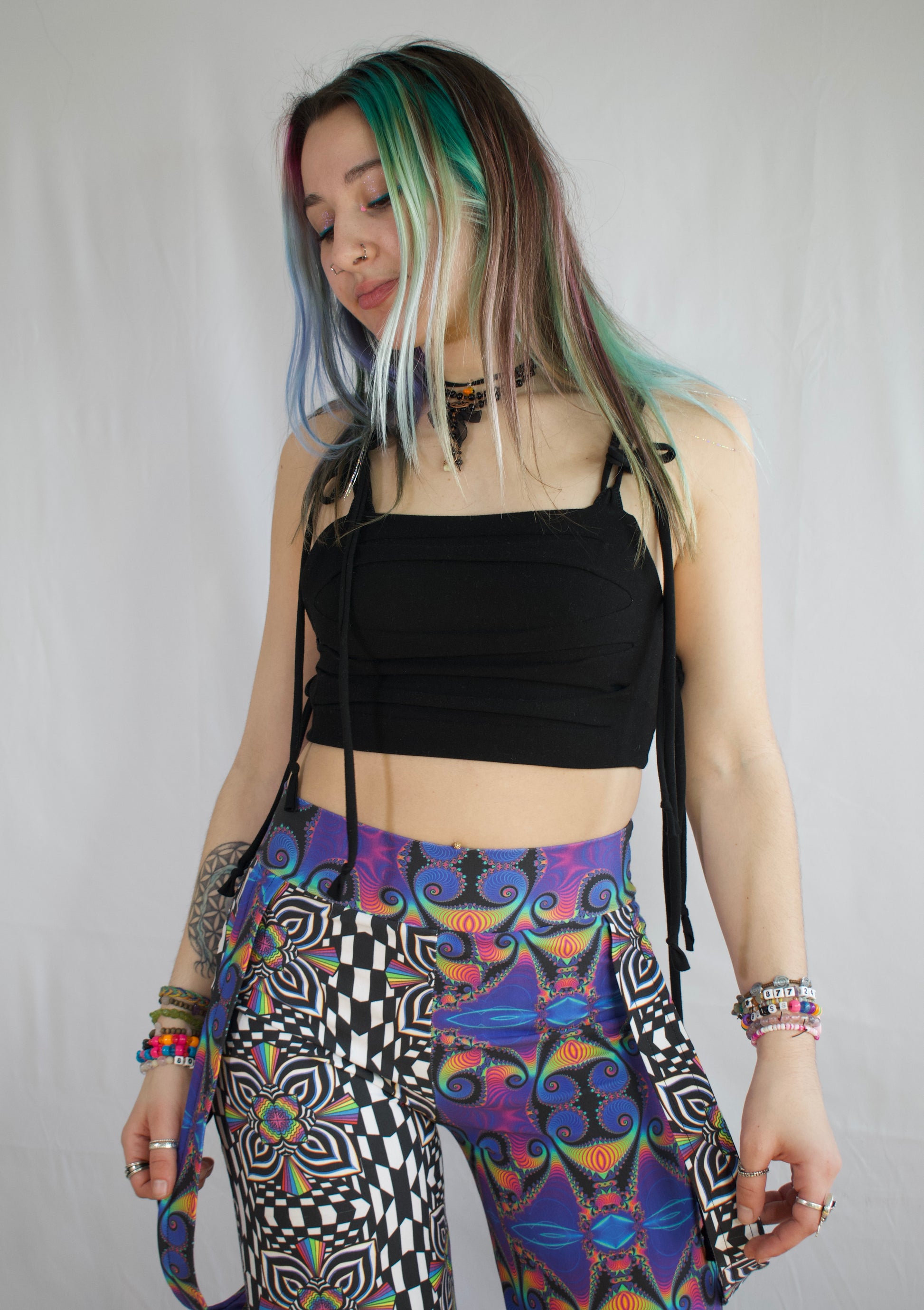 1st model is wearing a size small in the "xtra cropped" length