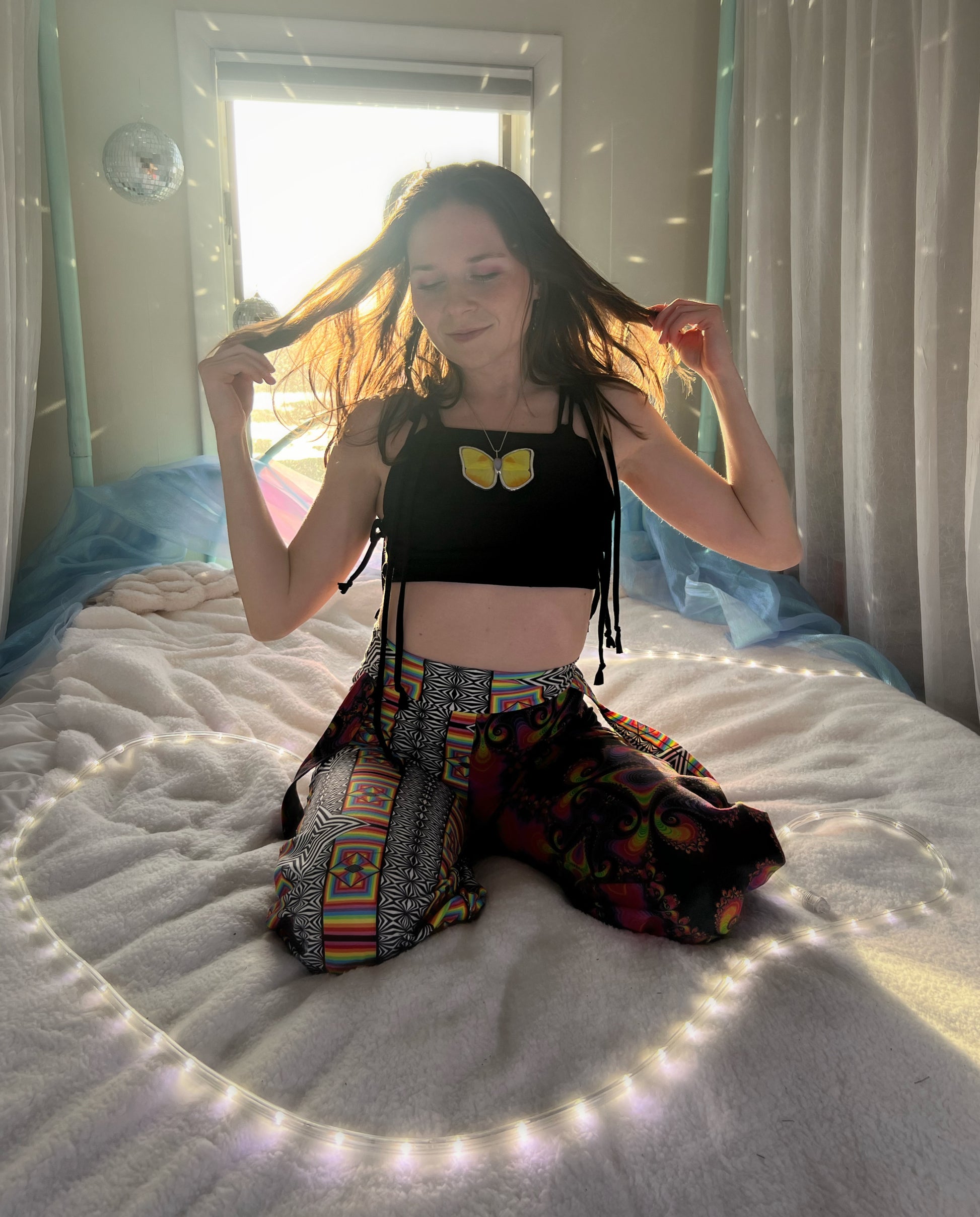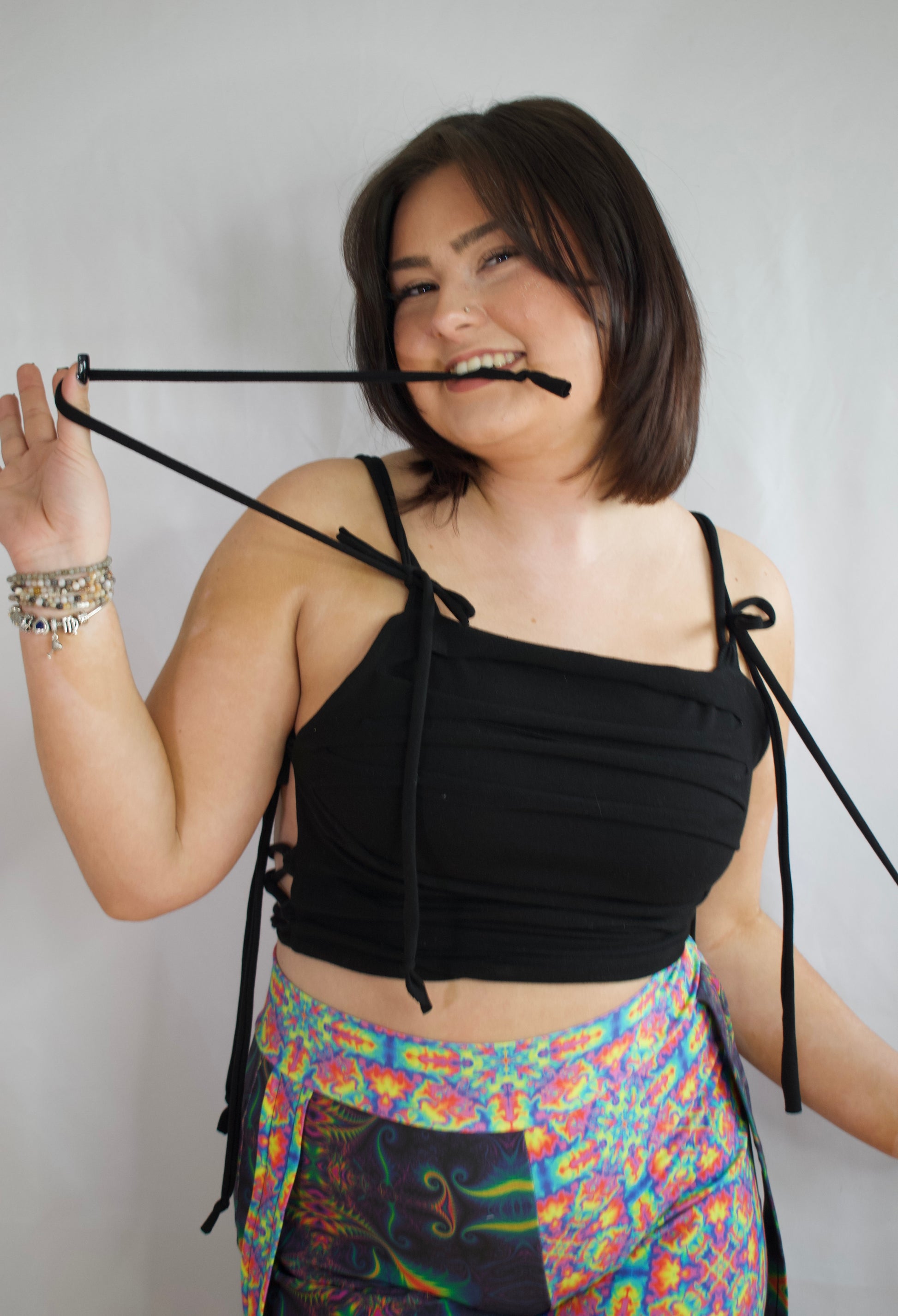 4th model is wearing xsmall in the โxtra croppedโ length