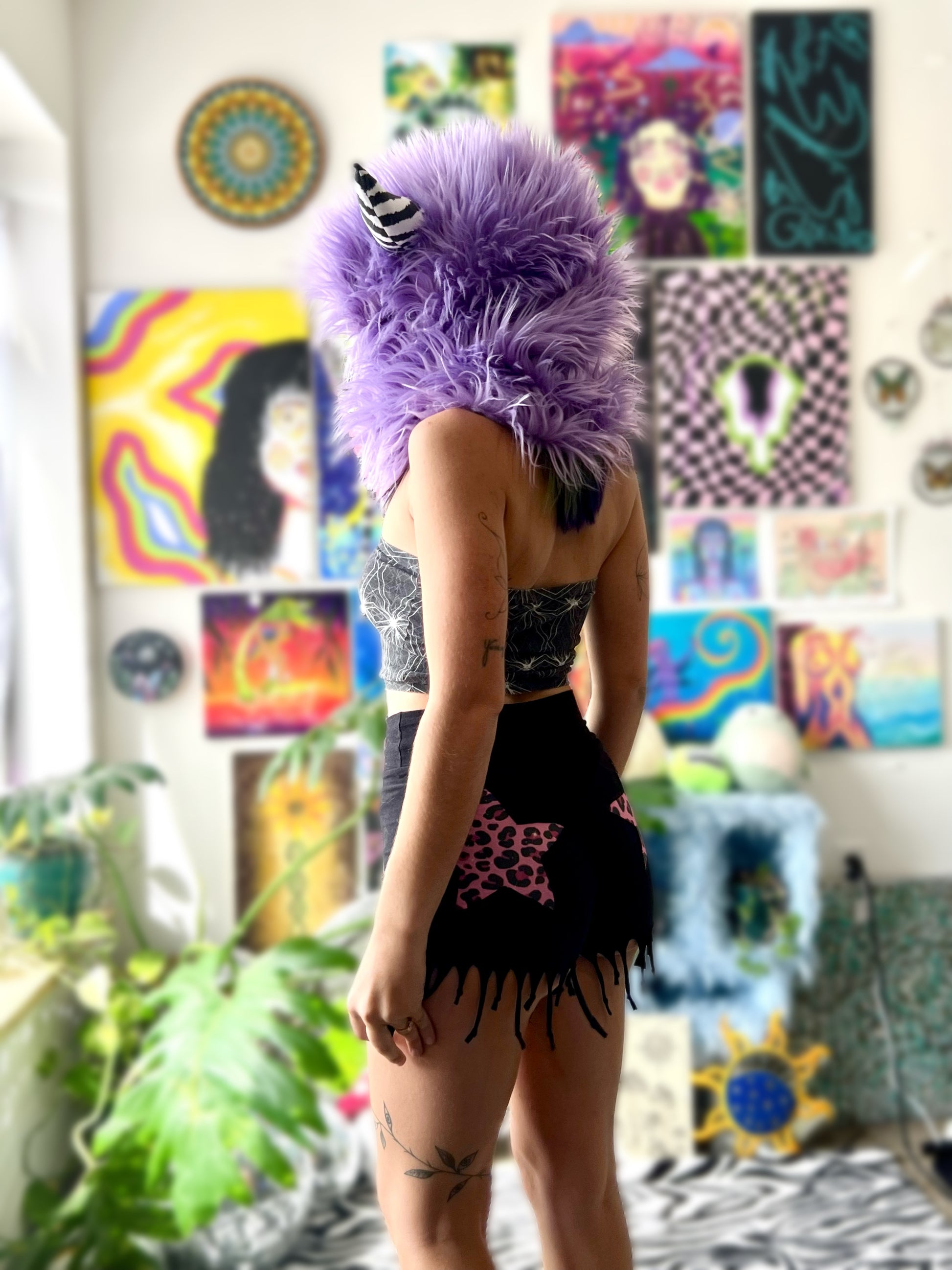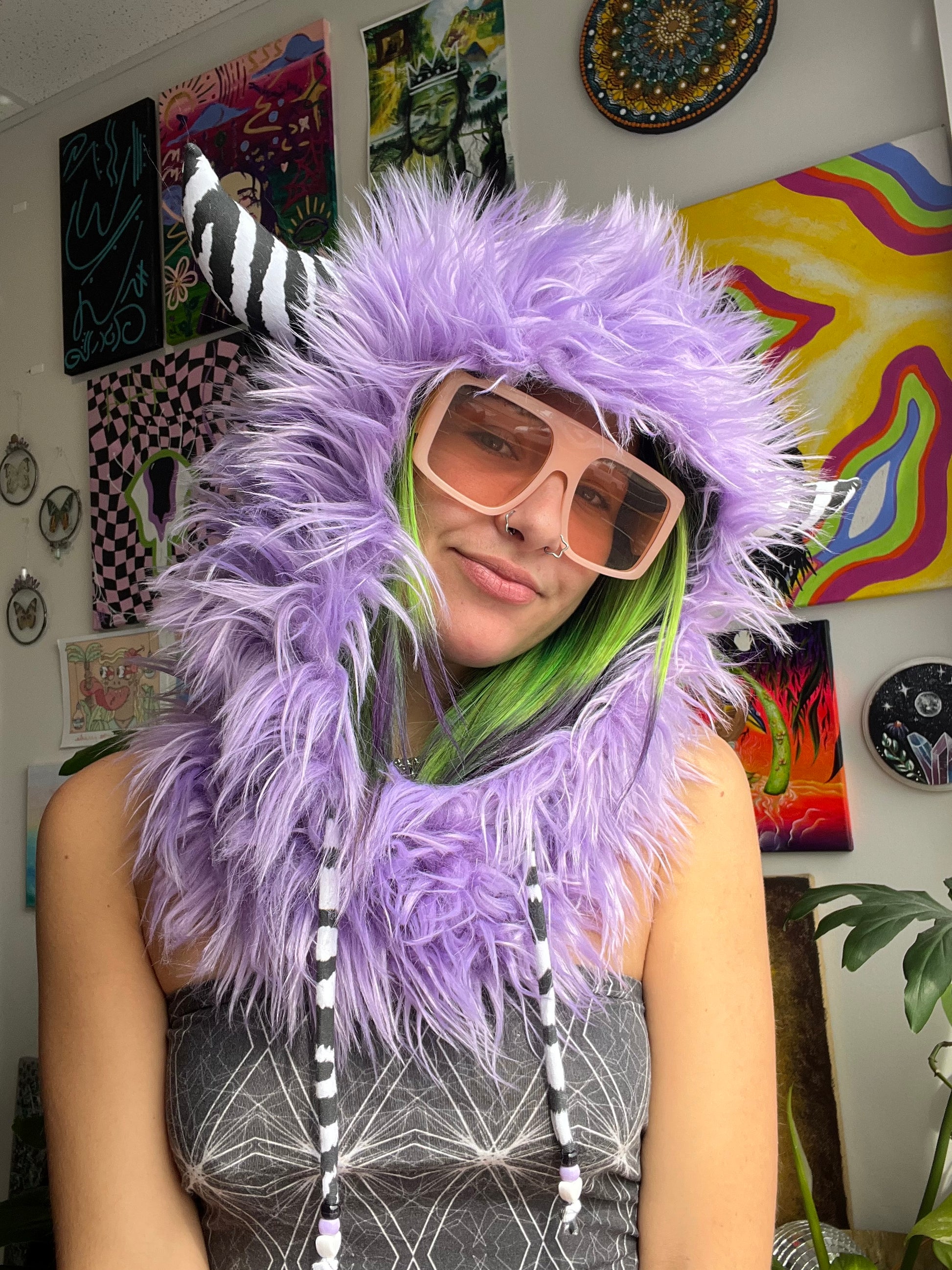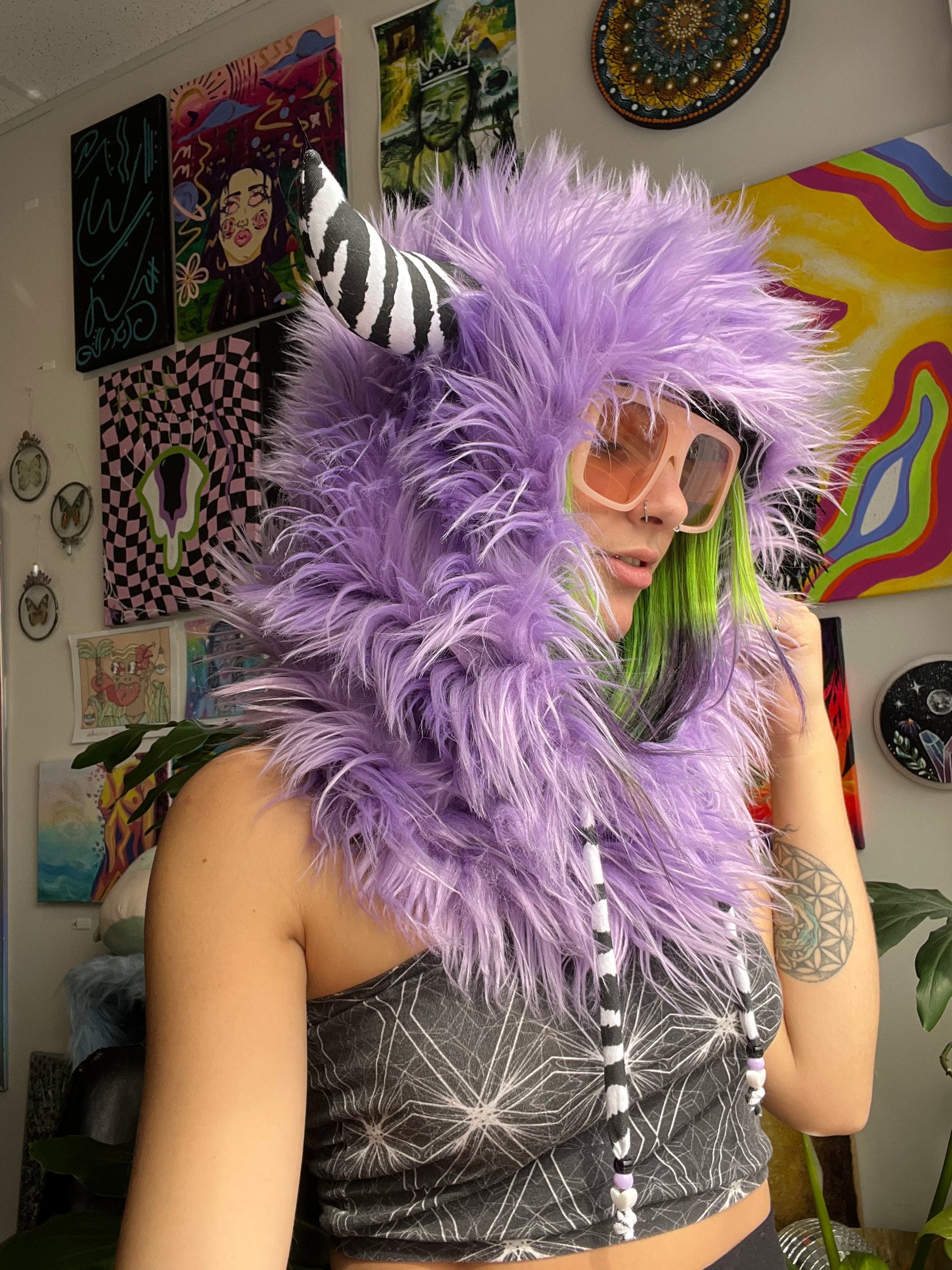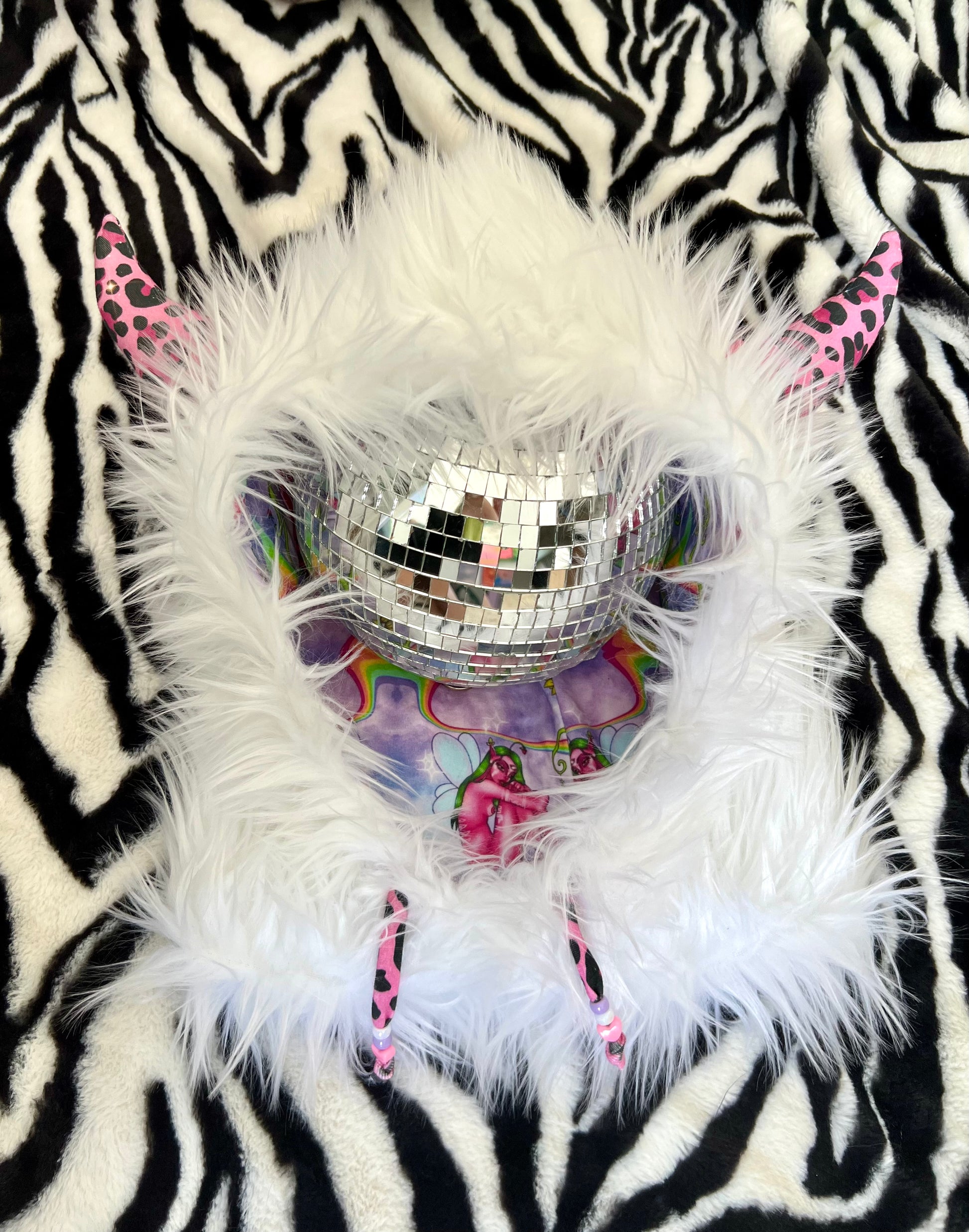 faux fur monster hood with cotton spandex lining & xtraa jumbo horns in your choice of pattern š