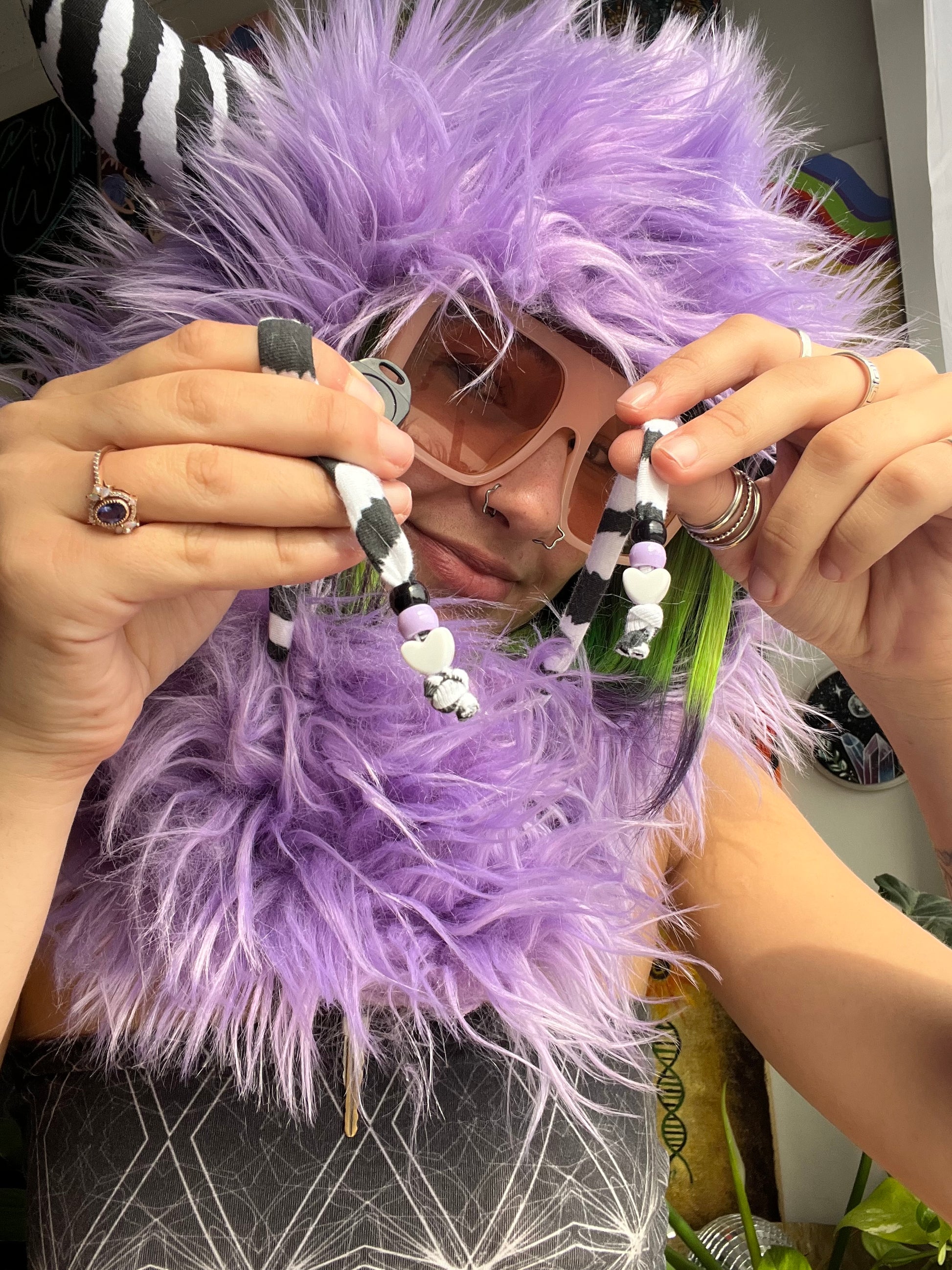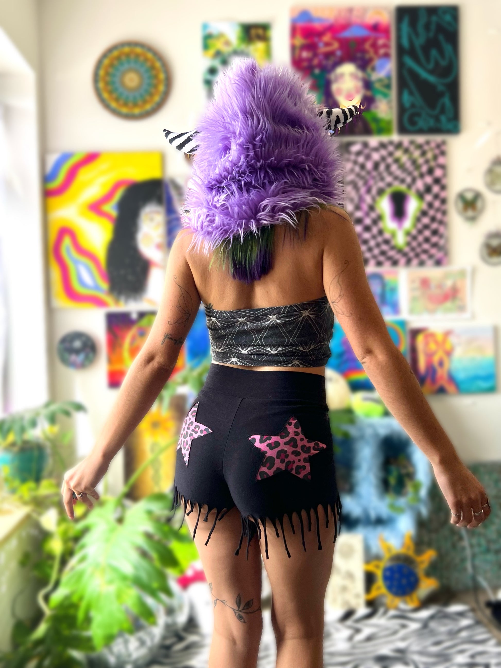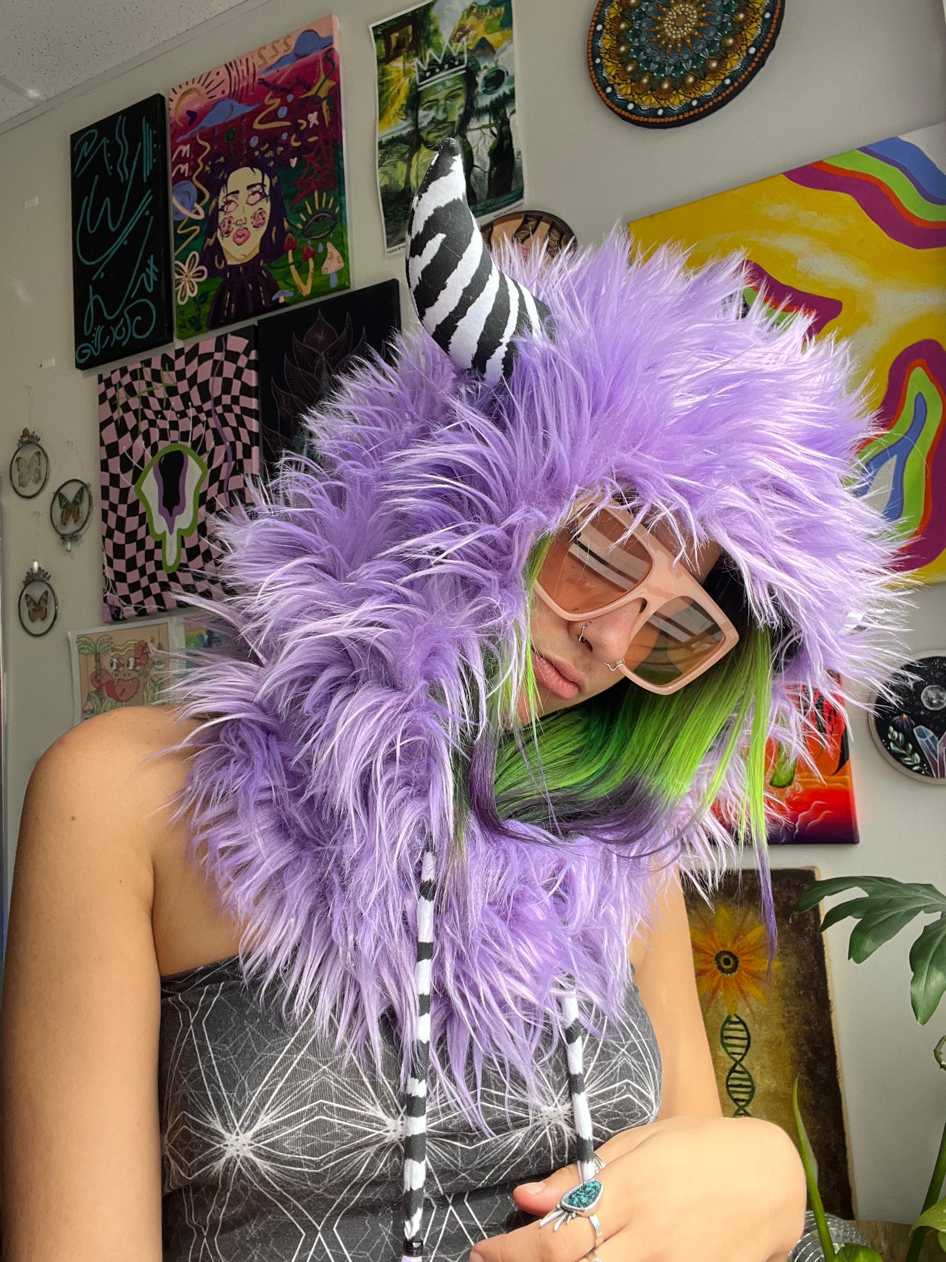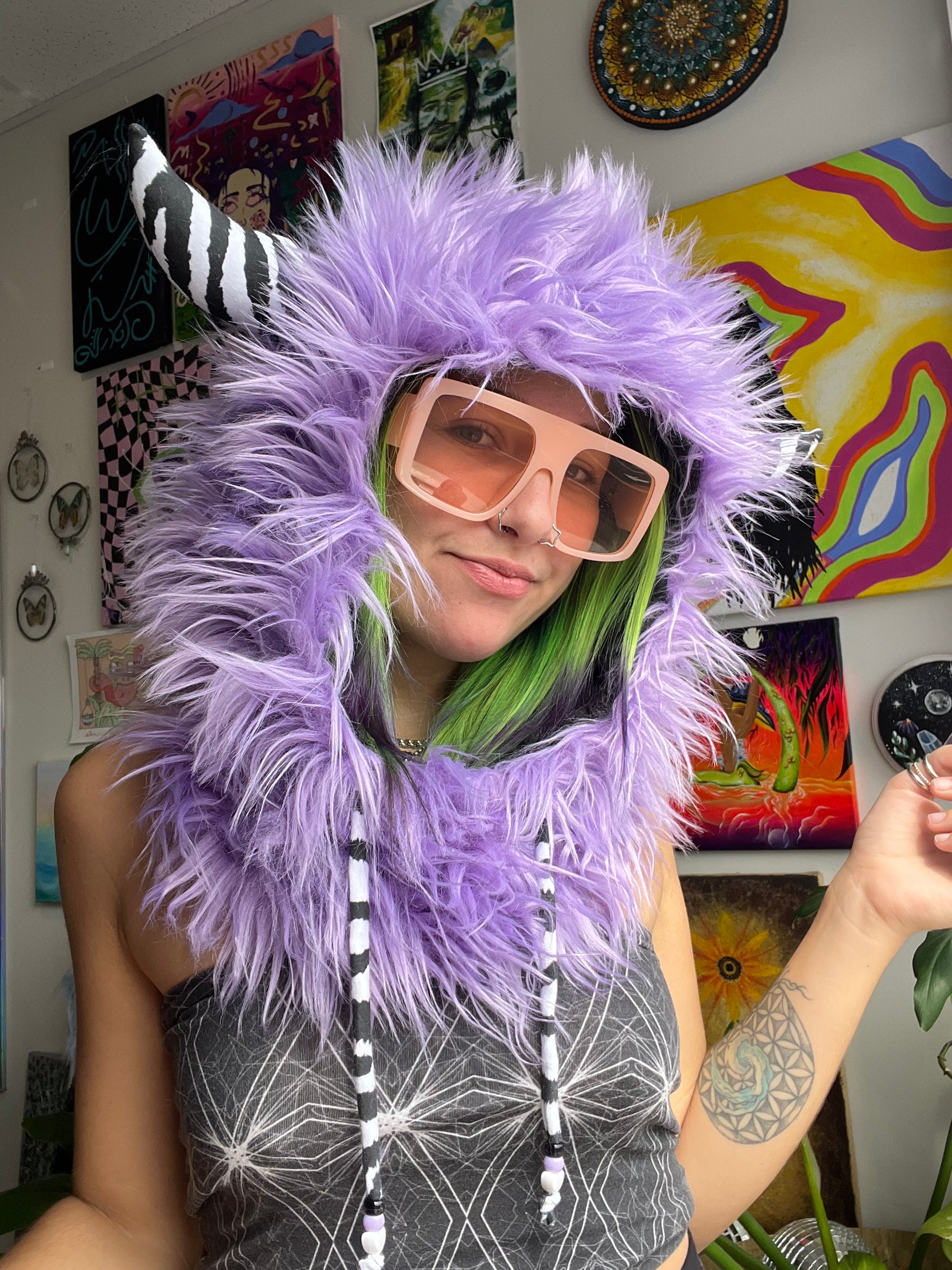 faux fur monster hood with cotton spandex lining & xtraa jumbo horns in your choice of pattern š