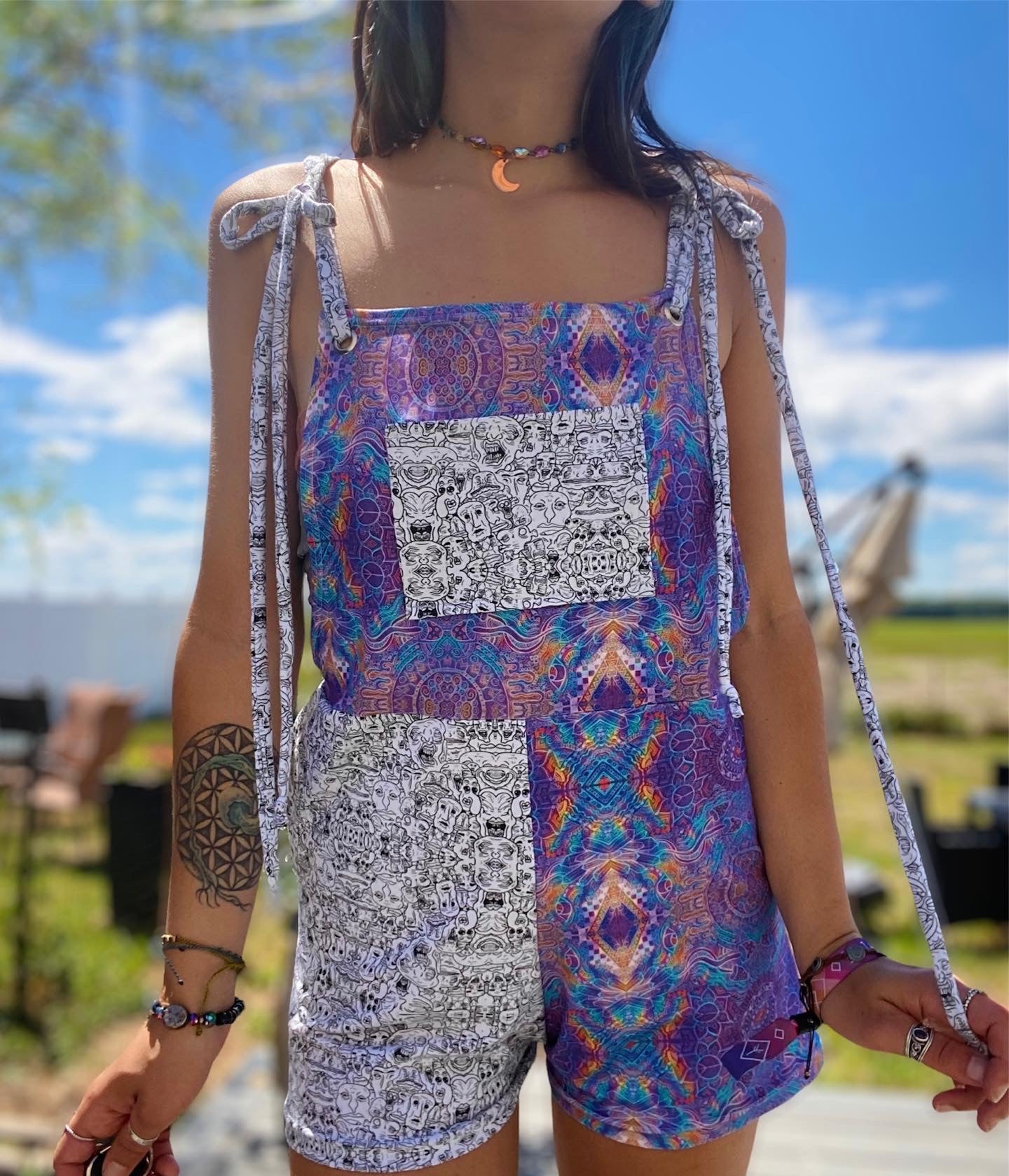 shown in the patterns psychedelica (one side + front bib) and split personality (one side + back bib)