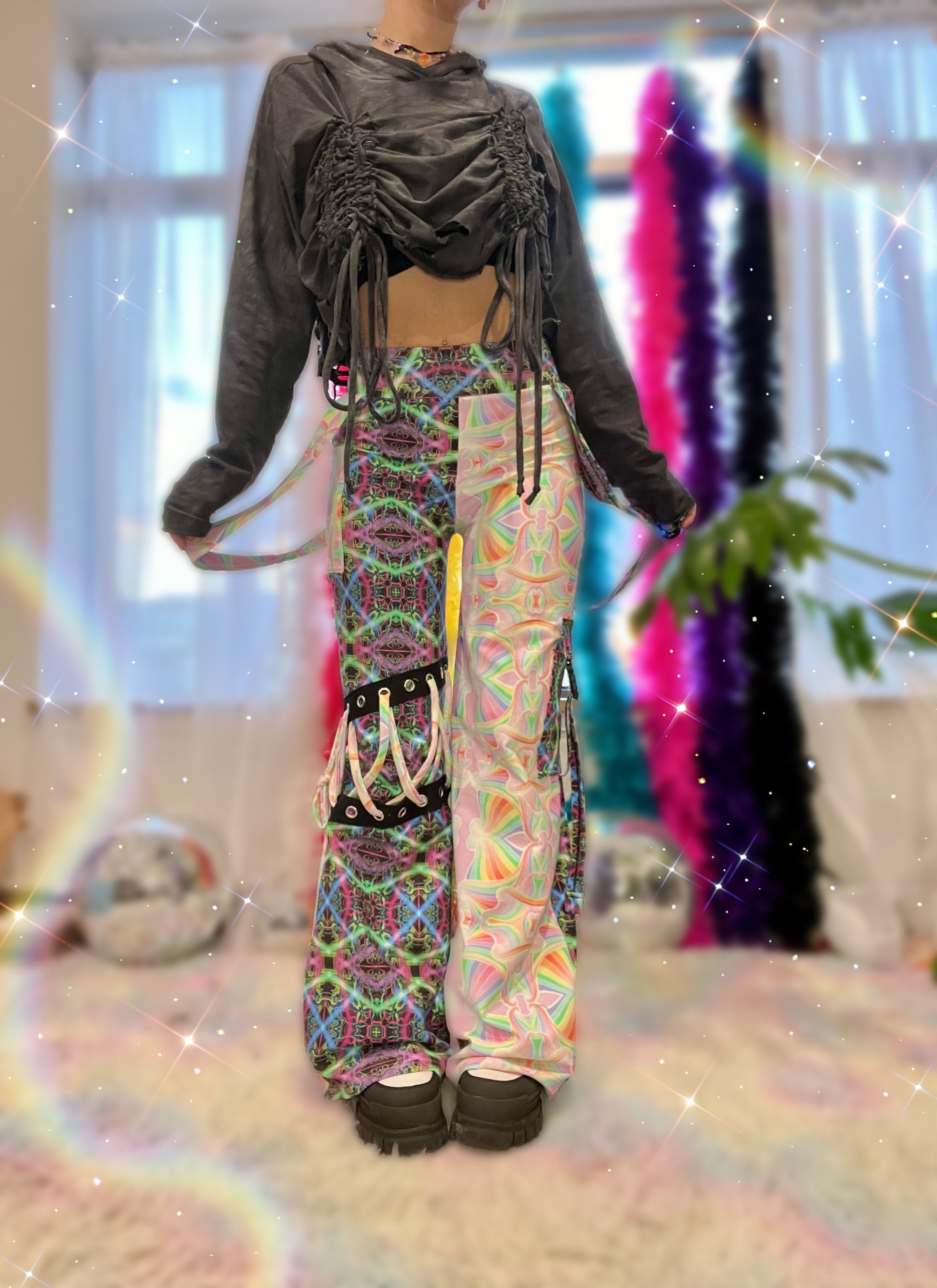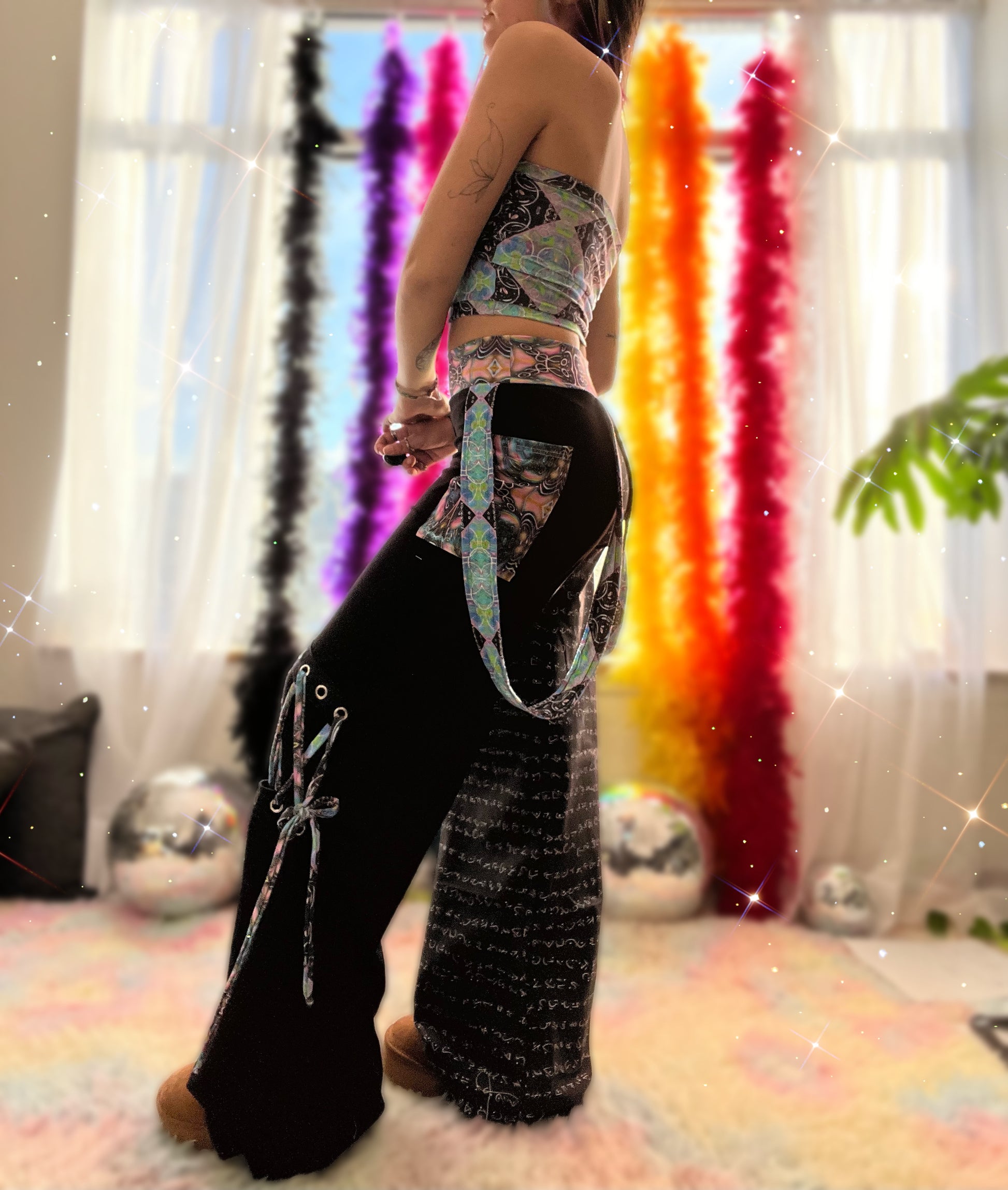 wide leg cargos mixed with the strappy pantsā”ļø featuring 1 buckle pocket and 1 side hand pocket with lace up detail